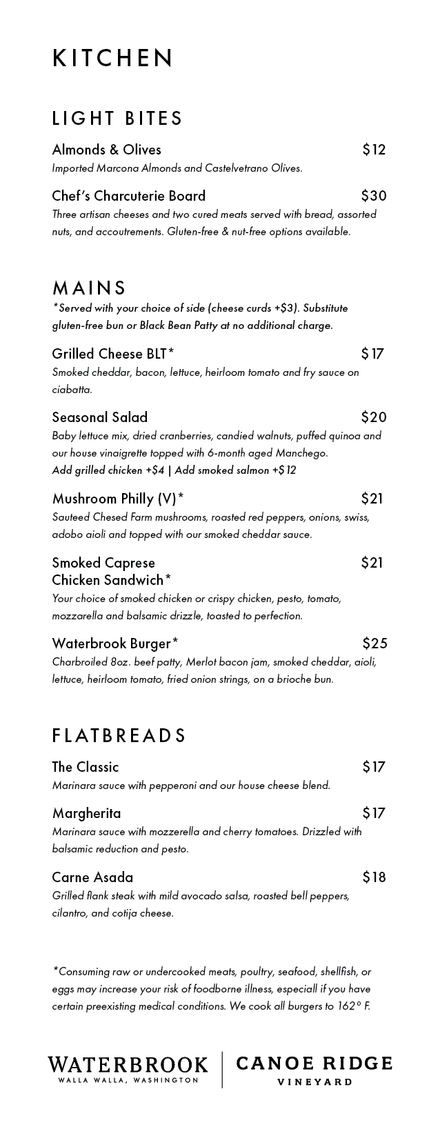Tasting Room & Kitchen Menus